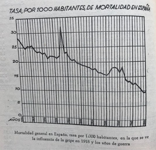 En el año 1900 España estaba aquejada por un potente trauma provocado por la crisis generada tras el desastre de 1898 al caer derrotada frente a Estados Unidos. Perder las colonias de Cuba, Puerto Rico y Filipinas supuso la pérdida de más de 50.000 combatientes, provocando una intensa conmoción en la sociedad española. A principios del siglo XX España era una sociedad eminentemente agrícola, en donde la principal fuente de riqueza radicaba en el cultivo, manipulación y comercialización de los productos del campo. Sólo algunos sectores como el vino, aceite y frutas, comenzaban a despegar con exportaciones a Europa. Al inicio de la Primera Guerra Mundial se produjo un auge económico para el país. La situación de neutralidad permitió un crecimiento considerable de la producción y de las exportaciones de materias primas, carbón y manufacturas, convirtiendo a España, gracias a la desaparición de la competencia y a la enorme demanda, en abastecedora de muchos productos para los países en guerra. La gran pandemia se produjo en el año 1918, conocida con el nombre de Gripe Española, y fue causada por un brote de influenza virus A del subtipo H1N1. La pandemia se desarrolló en forma de tres ondas epidémicas: la primera fue comparativamente benigna, muy contagiosa pero no especialmente mortal; en otoño se inició una segunda onda, de extraordinaria gravedad y con una elevada mortalidad entre los afectados, que alcanzó su máximo en el mes de octubre y finalizó en diciembre de 1918; y la tercera onda se presentó entre febrero y marzo de 1919, terminando en el mes de mayo.