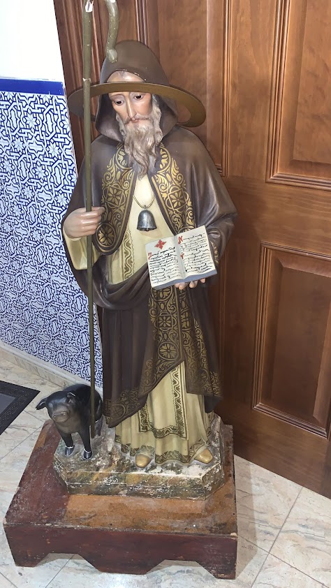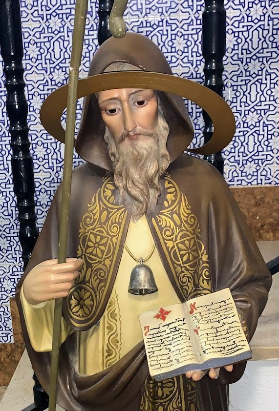 Los fraileros solían tener en sus casas una imagen del Santo, en especial aquellas familias que tenían granjas, o criaban animales para poder venderlos, como el de la imagen de la familia Raya-Molero. El Santo viste un hábito marrón con capucha. En la mano izquierda porta un báculo, como pastor/abad de las comunidades monásticas que ayudó a crear. En la mano derecha lleva un libro, símbolo de las Sagradas Escrituras y del profundo conocimiento que tenía San Antonio de las mismas. Al cuello lleva colgado una campana dorada. Se asocia este símbolo a dos significados: El primero, como elemento identificador de los Predicadores, personas capaces de atraer a la gente como la campana llama a los fieles a la unión en la Liturgia. El segundo, como símbolo de los animales de los frailes antonianos. Los miembros de la Orden de San Antonio, como vivían de la caridad de la gente, dejaban a los animales domésticos libres para que fuesen alimentados por las personas caritativas. Aunque hay quien afirma que el origen de este atributo quizás se deba a que cuando en la Europa del siglo XI, se produjo una terrible epidemia de erisipela, que causó gran mortandad, fueron los religiosos de la Orden de los Antonianos quienes se ocuparon de cuidar a los enfermos, quienes anunciaban su llegada haciendo sonar una campana. Asimismo, muchos de quienes fueron afectados por la epidemia, dijeron haberse curado invocándose a San Antón, por lo que la enfermedad pasó a denominarse Fuego de San Antón.